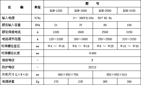 RSN-1200、1600、2500、3150電弧螺柱焊機