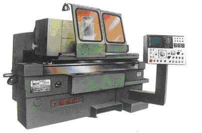 主要用途: 本機床砂輪架斜置,砂輪軸線對工件軸線夾角為30°,整個砂輪架按斜置方向進給。本機床采用雙砂輪磨削工件,能一次磨出工件的相應的加工面,效率很高。主要用于磨削帶軸肩的零件,特別適用于汽車行業(yè)轉(zhuǎn)向節(jié),齒輪軸,車軸等帶軸肩零件的大批量生產(chǎn)。 結(jié)構(gòu)特征: a、本機床采用FANUC Position Mate-Model D型單軸數(shù)控系統(tǒng),用來控制砂輪架的進退和切入進給。具有CRT中文顯示和MDI數(shù)據(jù)輸入鍵盤。 b、頭架由交流電機變頻無級調(diào)速帶動工件旋轉(zhuǎn)。 c、液壓控制頭架主軸移動,實現(xiàn)工件軸肩自動對刀,工件尺寸自動測量采用MARPOSS單向?qū)Φ秲x及徑向主動測量儀。 d、采用大顆粒單點金剛石或金剛刀片對砂輪進行自動仿形修整,修整后的自動補償。 e、砂輪主軸系統(tǒng)采用動靜壓軸承。 f、砂輪卡盤可夾持單片或多片砂輪,最大夾持寬度175mm,砂輪最大直徑φ750mm,砂輪線速度45m/sec。 g、機床具備自動監(jiān)控及可靠的連鎖裝置。
