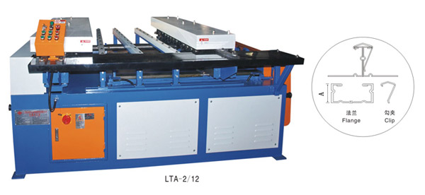 主要技術(shù)參數(shù): TDF共板法蘭機(jī) TDF Flange Forming Machine 型號(hào) 電機(jī)功率(kw) 加工板厚 (mm) 骨型A(mm) 骨型形狀 重量(kg) 外形尺寸(mm) LTA-10 2.2 0.6~1.0 34 984 3520x750x830 LTA-10/25 3.0 0.6~1.0 25 980 3520x750x830 LTA-12 3.0 0.8~1.2 34 956 3550x780x890 LTA-15 3.0 1.0~1.5 35 1520 3600x750x890 LTA-2/12 3.0/3.0 0.8~1.2 34 2200 3200x2700x1100 備注:安裝用的角碼及模具另配。