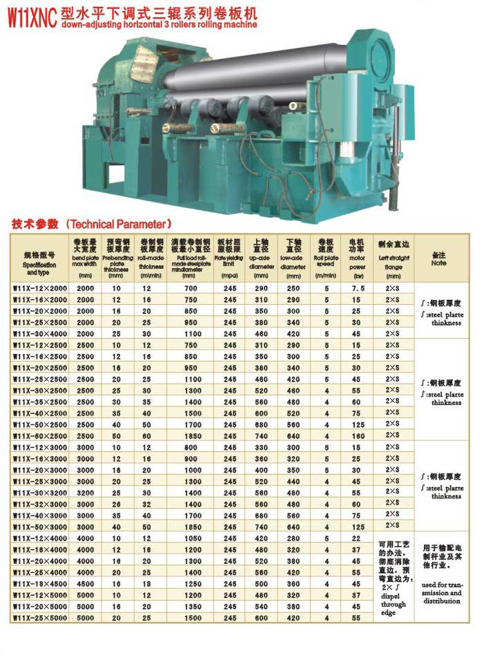 W11XNC型水平下調(diào)式三輥系列卷板機