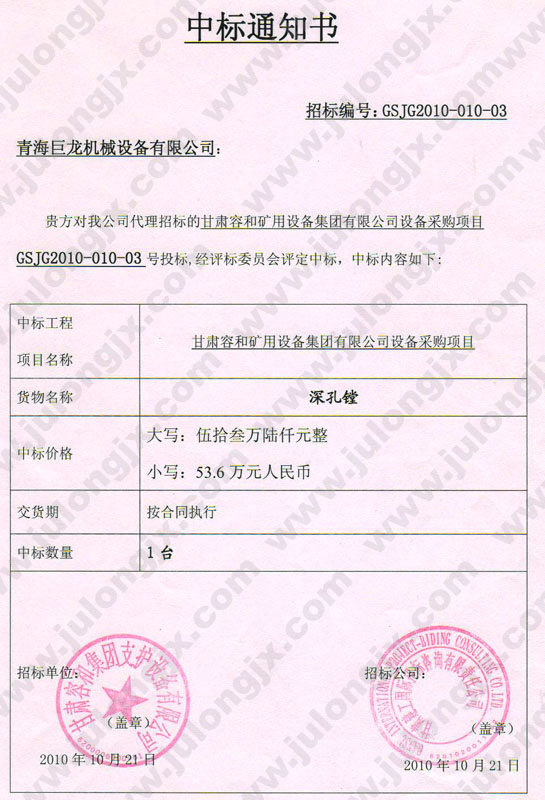 中標(biāo)通知書